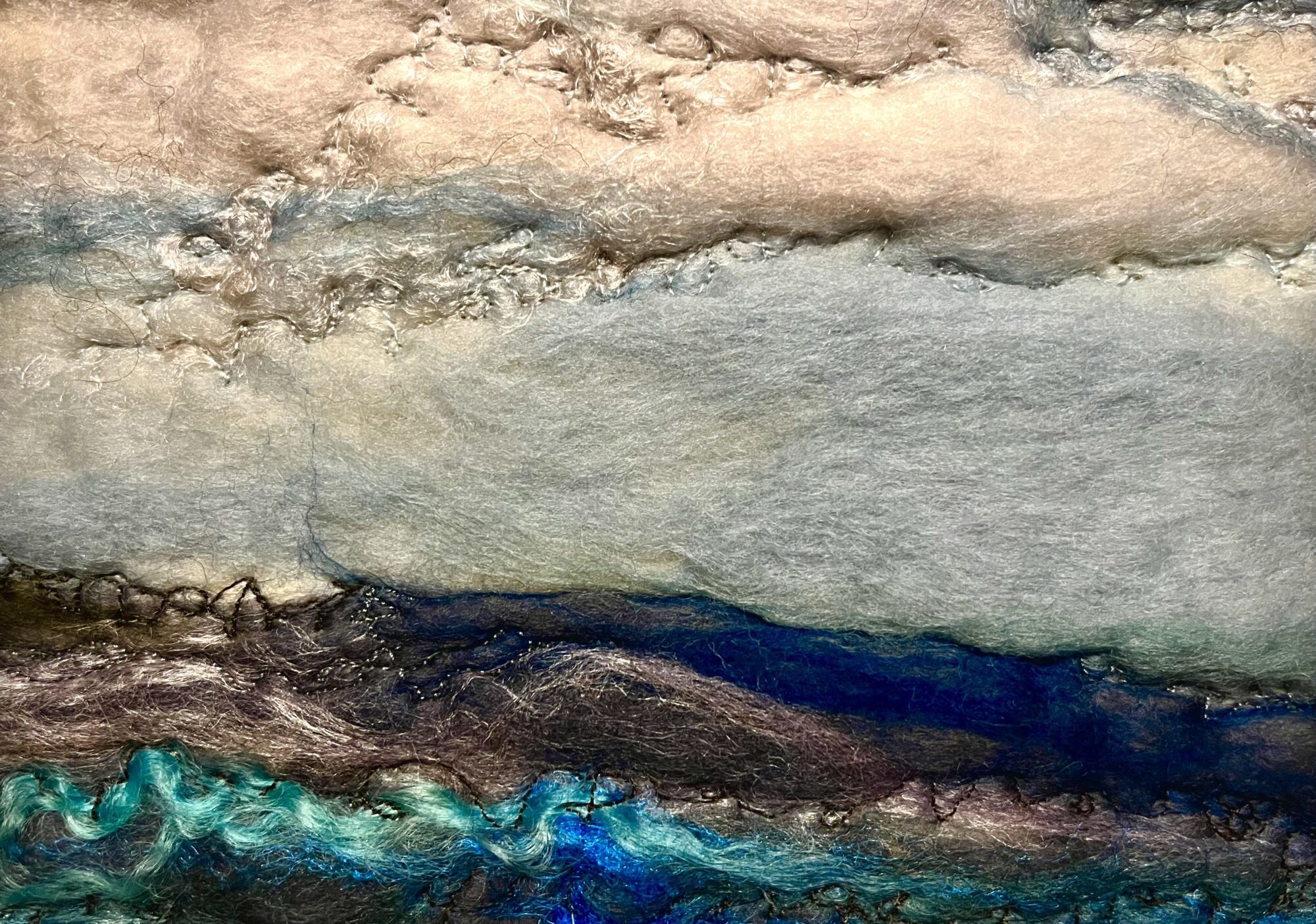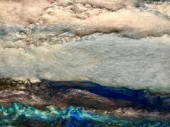 The tactile process of working with yarn and wool fibres brings a true connection to the medium allowing Cathleen to capture her love of Argyll and the ever-changing light into a visual piece of work.