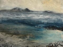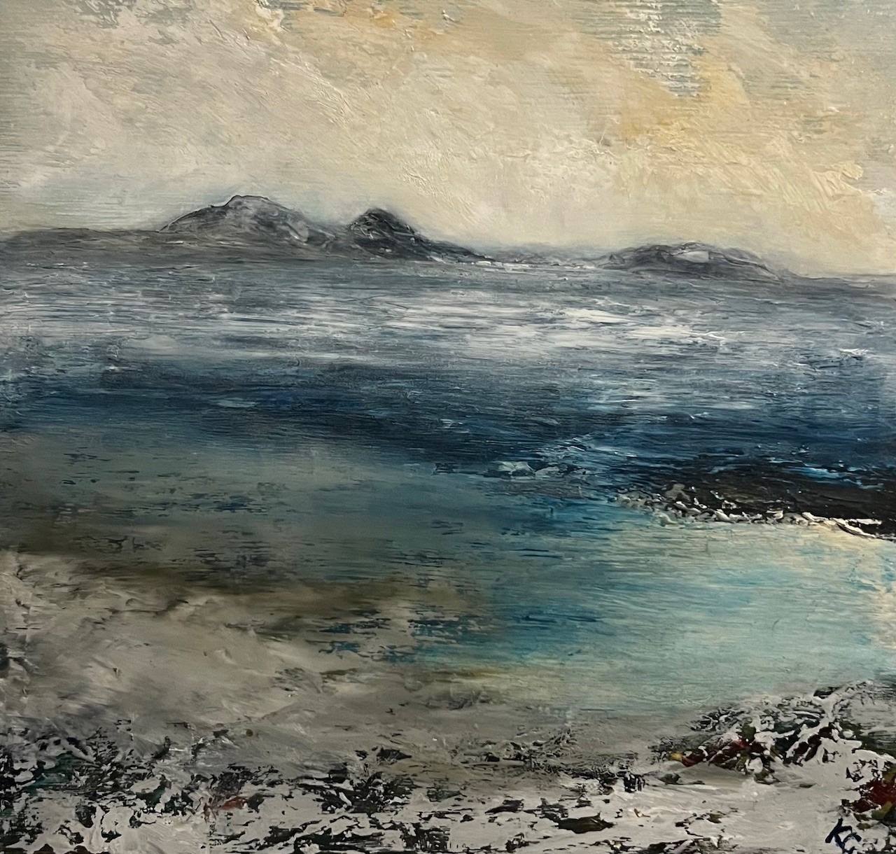 Kerrien lives in Achnamara on the coast of Argyll and is inspired to paint by the wild beauty of this ever changing landscape. She enjoys experimenting with the textures and effects that she can achieve with acrylics and oils in particular, and uses these to give movement and light to her paintings.