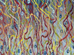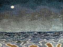Hand weaving demands patience and gives great satisfaction as the slow process allows imagination free rein. Simple line drawings in sketchbooks change into images of hidden complexity, the constraints of vertical warp and horizontal weft providing plenty of opportunities for exploring ideas in tactile delight.