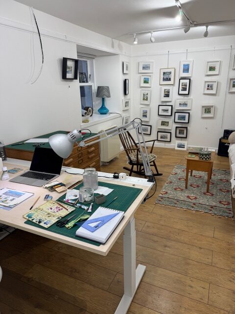 The studio is on the ground floor of a house, accessible from the road leading to Ellenabeich Car Park to the North West of the harbour. There is a front door step but no other stairs. there will be signage for access the studio. Prints and cards will be available for purchase and art materials will be available to have fun with. There will be free basic refreshments at the studio but there are really nice cafes and restaurants nearby on The Isle of Seil and on Easdale Island.